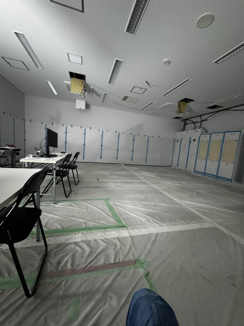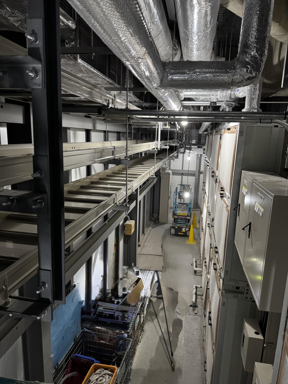 しばらく、ケーブルラックをつけたり、、耐震架台をつけたりとしていましたが、ようやくケーブル通線。